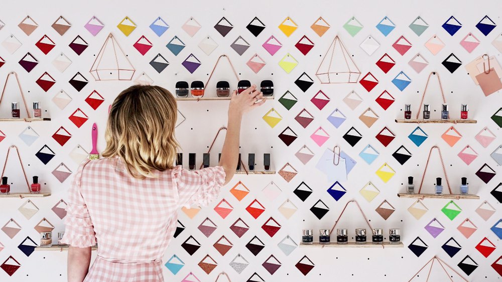 Since Heitler Houstoun Architects is widely known for the innovative design of Drybar salons, new clients would often approach us with new beauty retail concept ideas. One of my favorites was a nail shop called Paintbucket. It’s a stylish and vibrant brand with a beautiful customized space featuring a new, more stunning way to browse nail colors. Each nail color is represented by a painted swatch in the shape of the brand icon. We wanted guests to be able to see and touch the colors outside of the bottle – just the way it’ll be on their nails.
